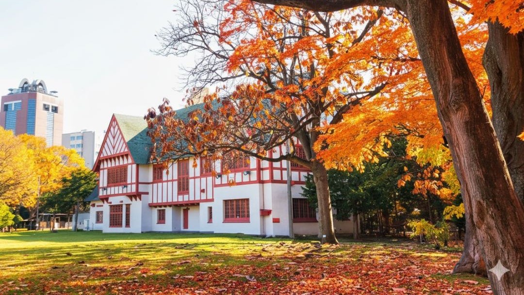 隱身市中心的靜謐庭園,四季皆有景。沿小徑繞行一周,小池倒映紅葉與歷史建築,午後光影尤其迷人。從東西線「西 18 丁目站」步行約 5 分鐘可達,附近還有北海道立現代美術館。秋日我常來這裡散步、在草地上曬太陽放空。腹地不大,卻有濃密的秋色;以舊公館的德式建築作背景,很容易拍出漂亮的照片。